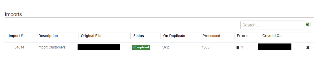 Users can also click on the "X" icon to completely delete the import and remove the imported data from the system.